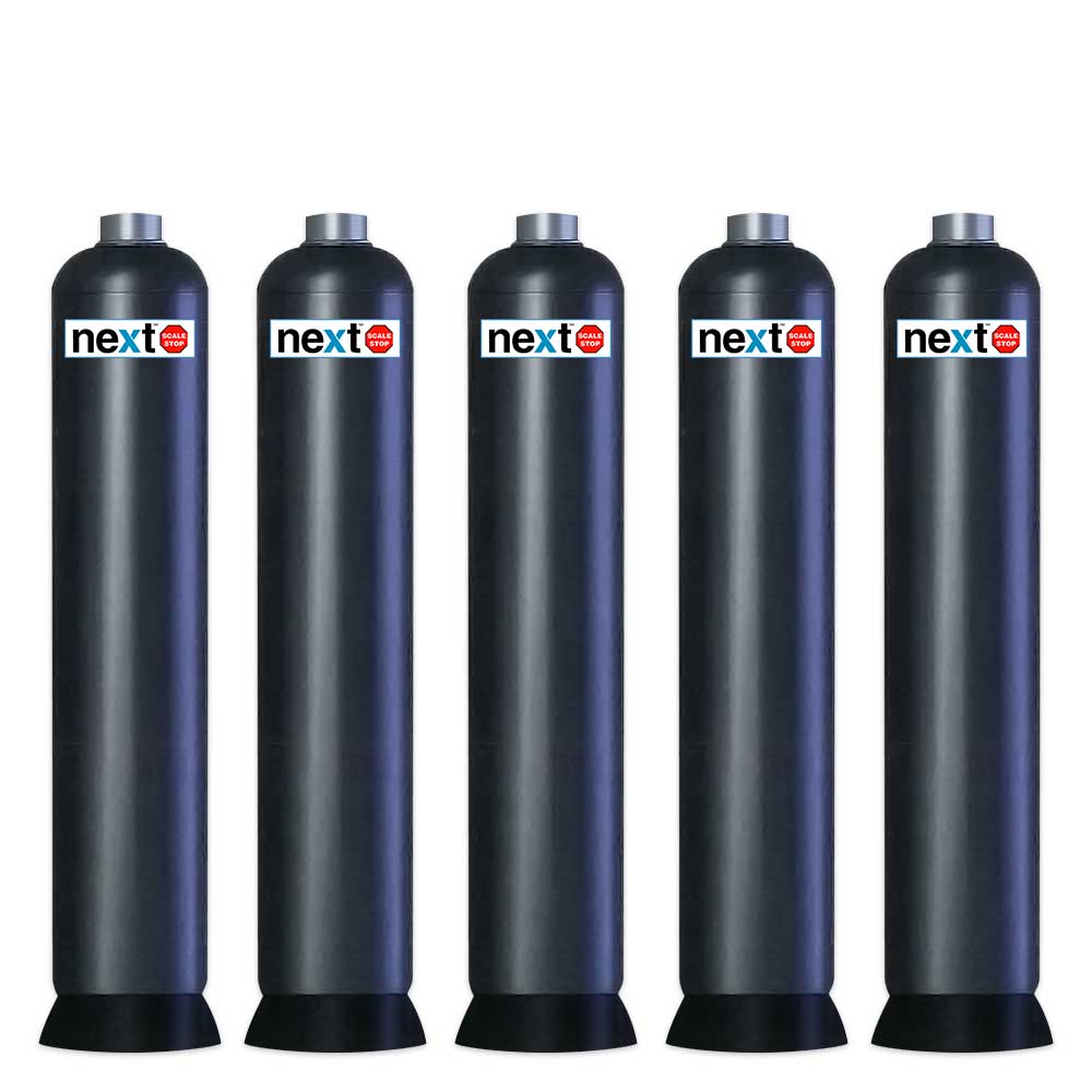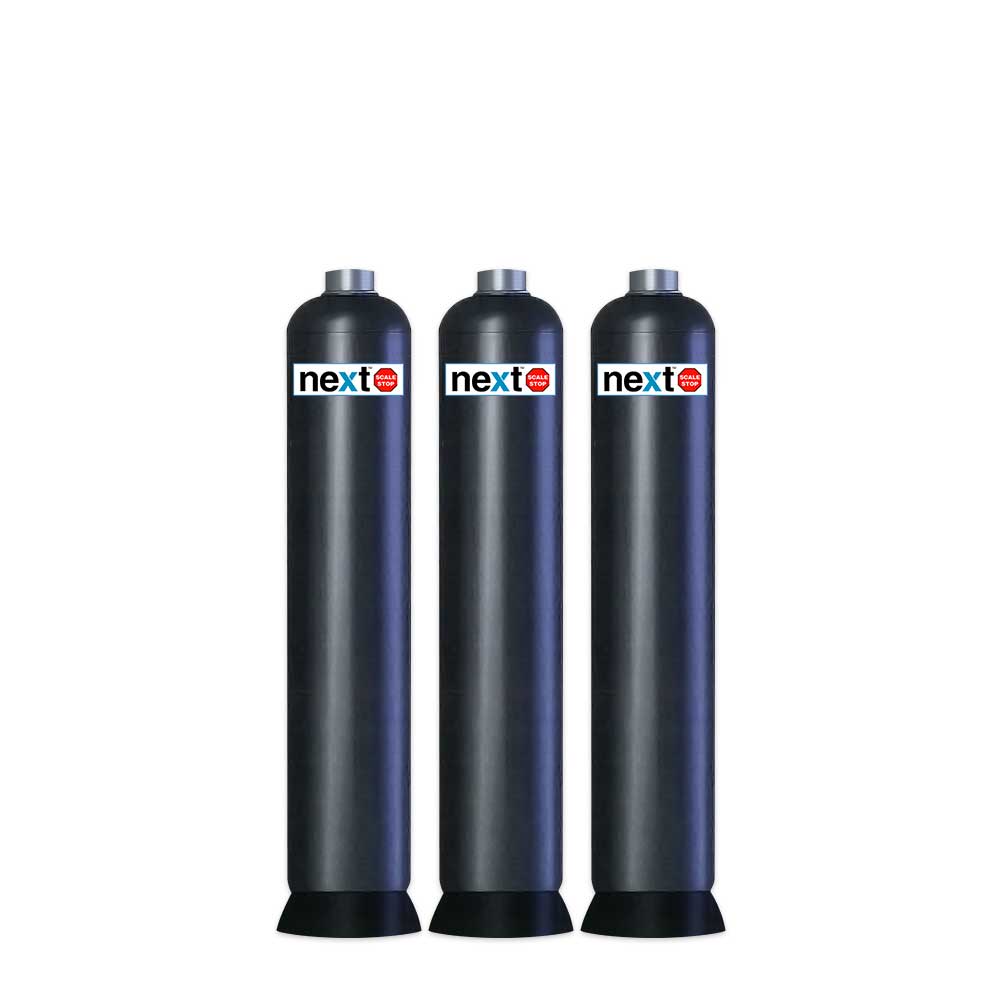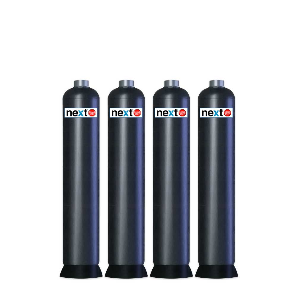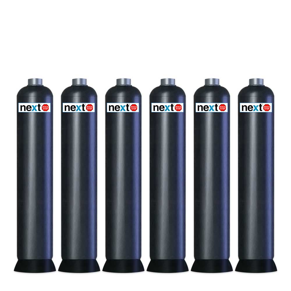 Next ScaleStop systems are available in a range of sizes in single tanks with continuous flow capacities of up to 75 gallons per minute for the NSS-1665. For higher flow demand, multiple tanks are installed in parallel. Installation is quick and easy with only inlet and outlet connections. No need for a potable water bypass, no need for a drain, no electrical connections, no controller to set.