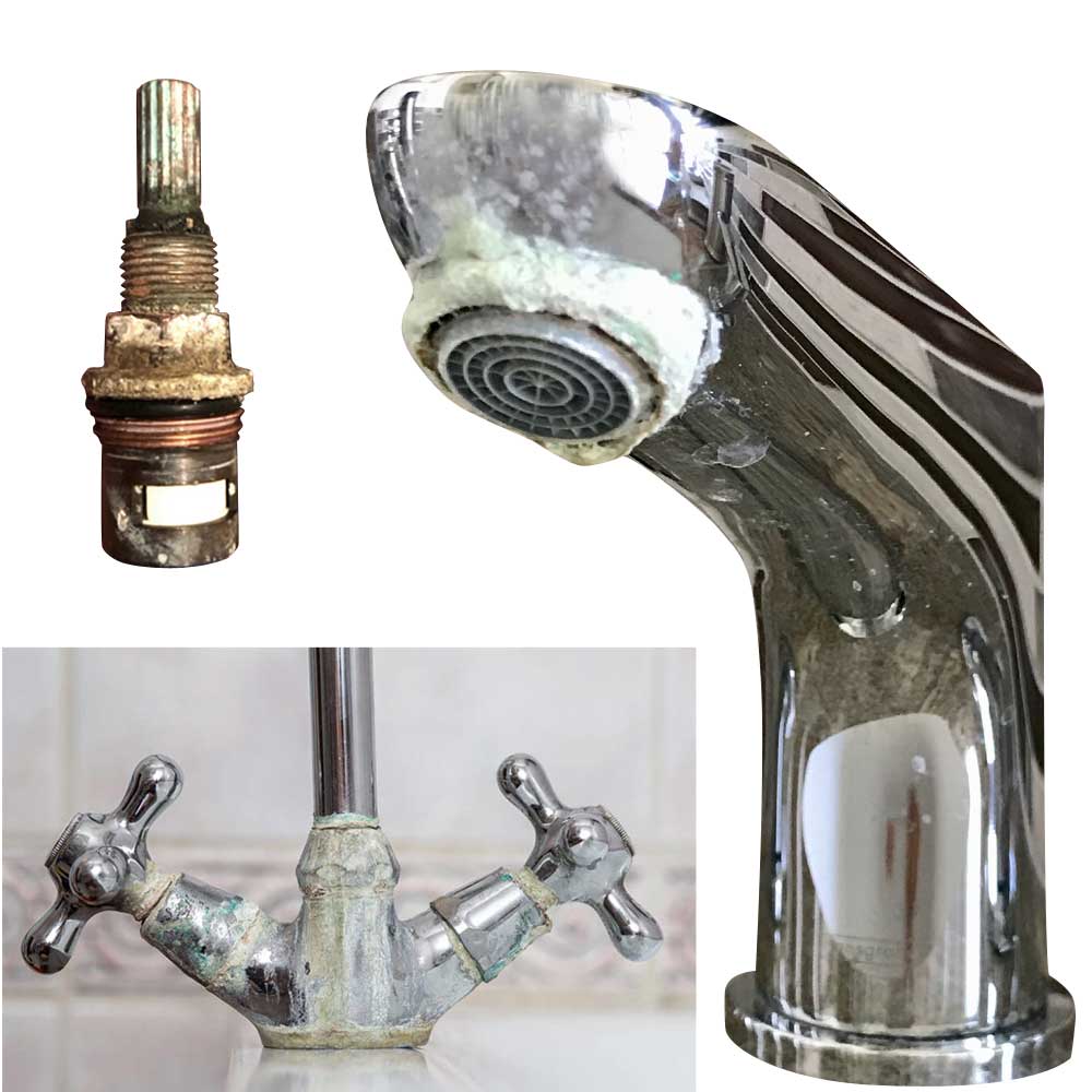 Greatly extends life of faucets, faucet cartridges, and faucet components