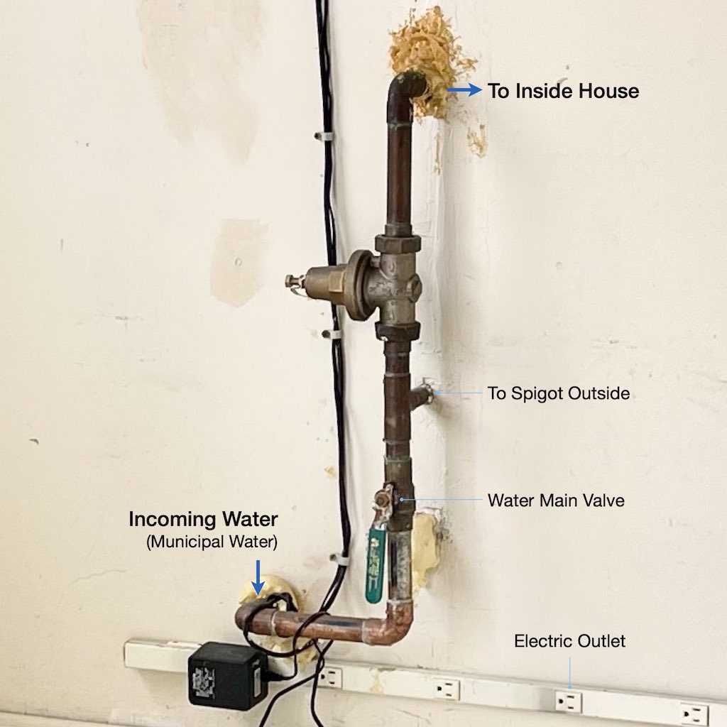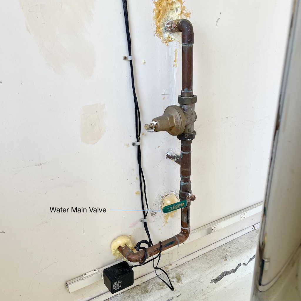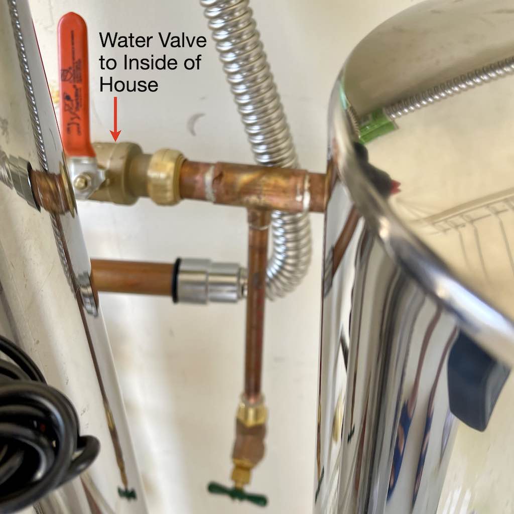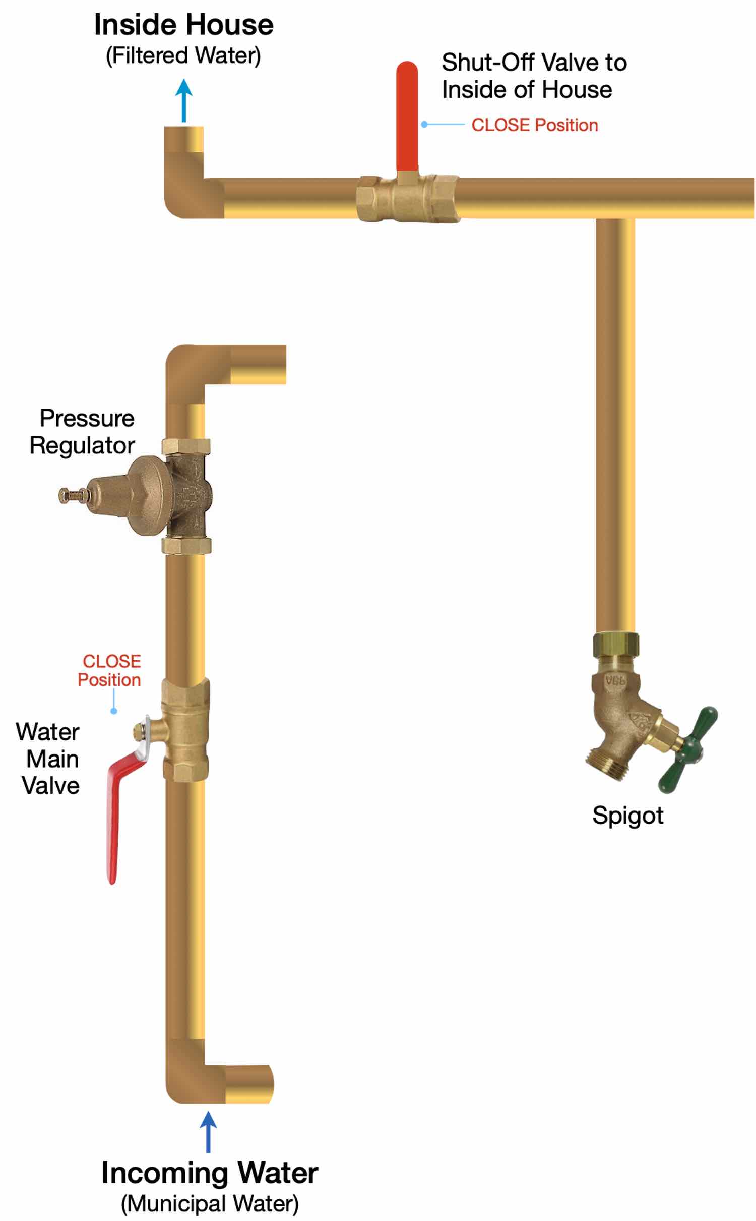 Turn the Water Main Valve Lever to the CLOSE position (perpendicular to the water pipe).