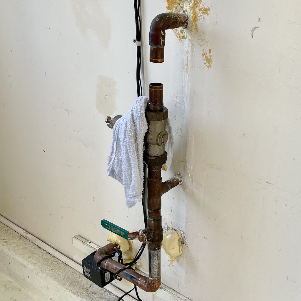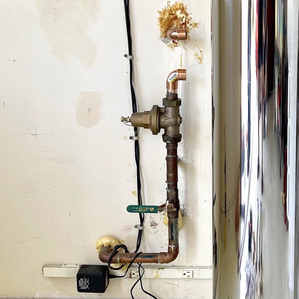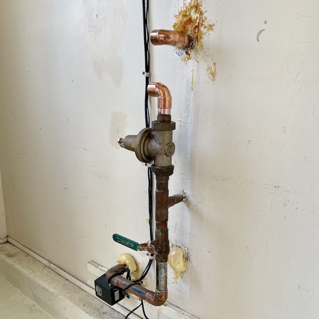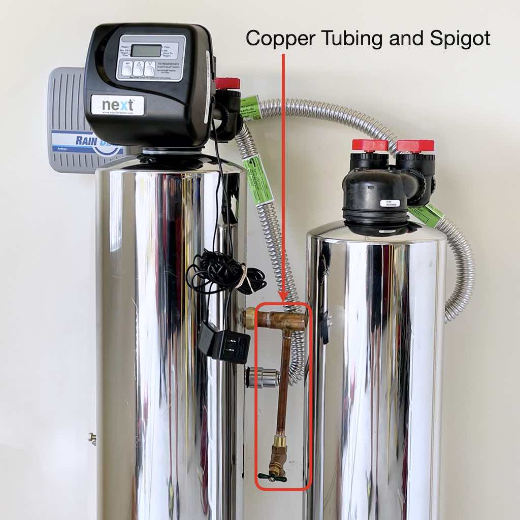 Install copper tubing and spigot, which will be used to flush Carbon Media Tank during installation.
