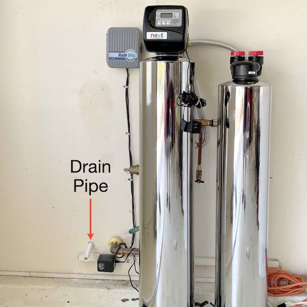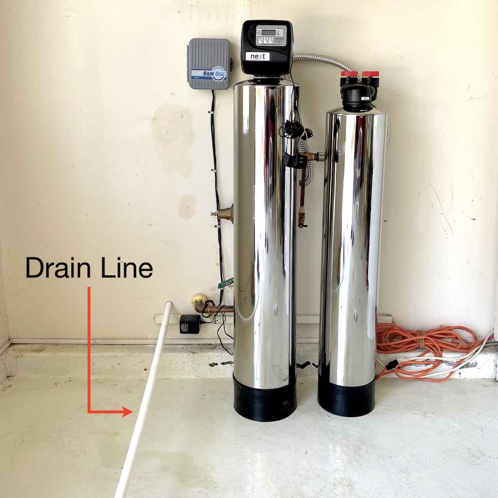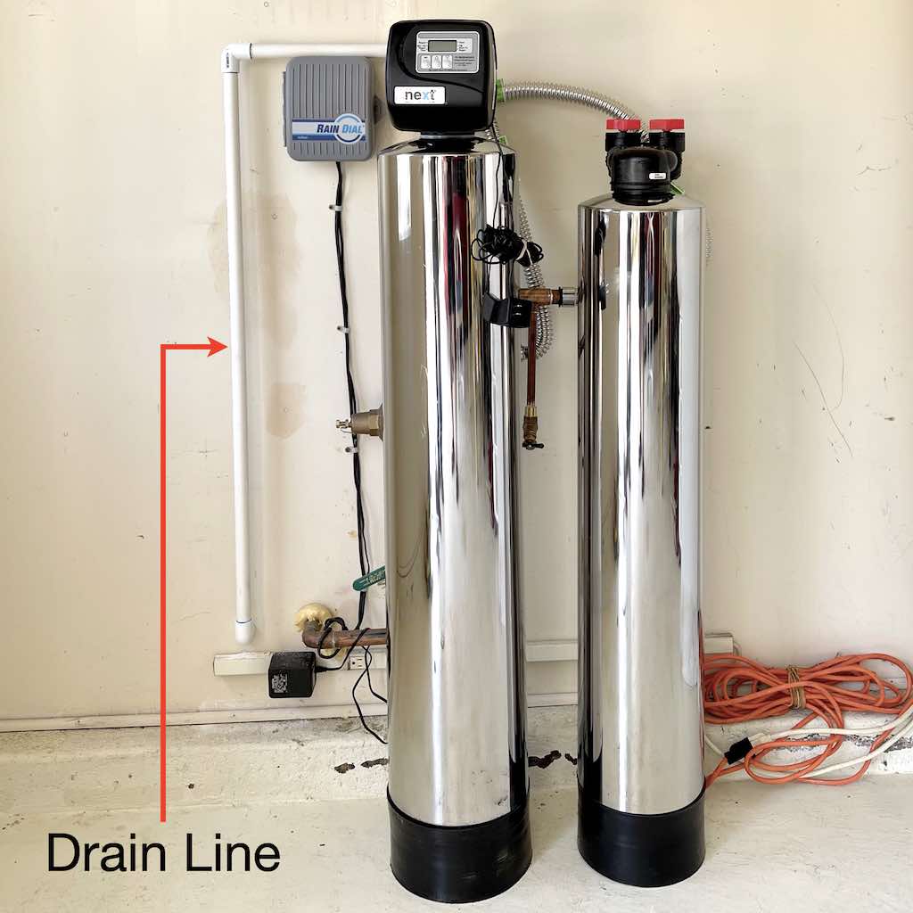 A drain line will be used to flow backwash water from the Carbon Media Tank (the tank that has the Controller) to outside of the house.