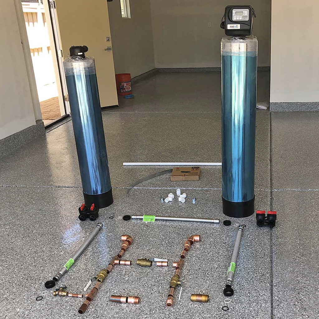 ⚠️ IMPORTANT Backwash the entire system at least twice during installation, to ensure that the media in both tanks are fully flushed.