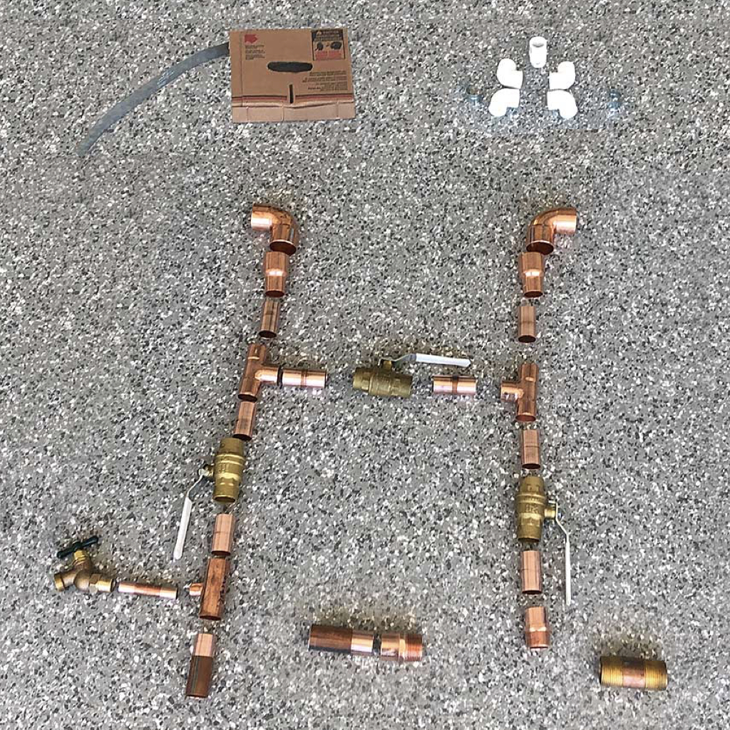 The next few steps involve cutting, preparing, and connecting the copper piping for the water filtration system. Below is an example of a copper piping connections diagram.