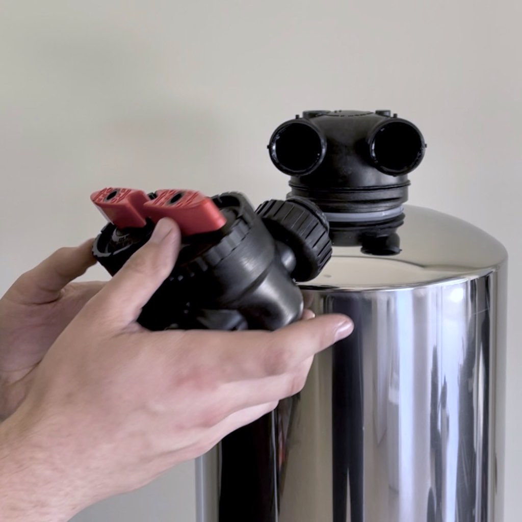 The Bypass Valve is now securely attached to the Head of the Carbon Media Tank.