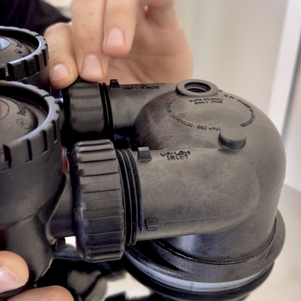 Apply plumber's grease all the way around the interior of both openings of the Bypass Valve on the Carbon Media Tank.